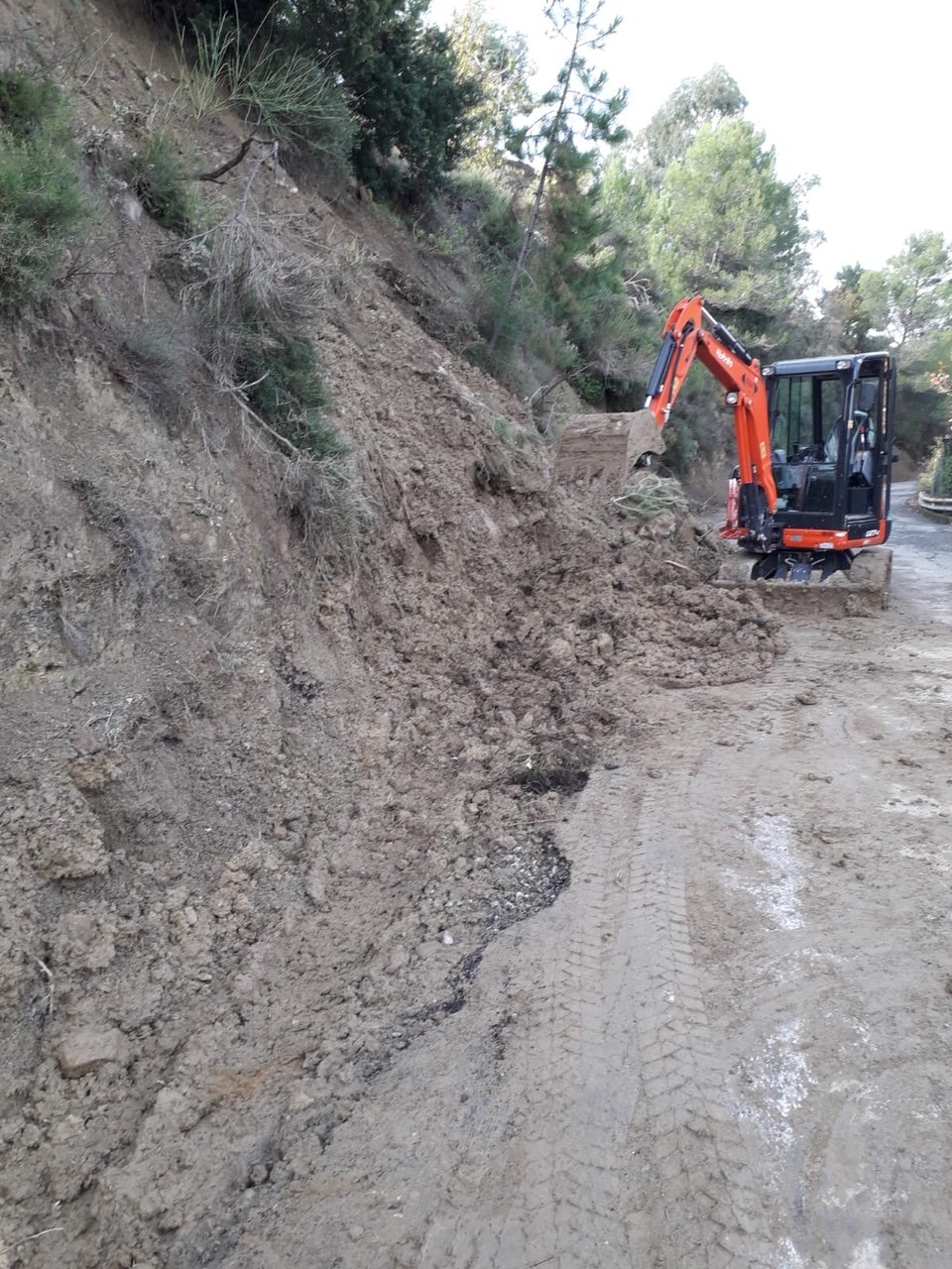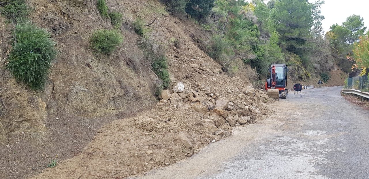Lavoro di pulizia di una frana nell'entroterra ventimigliese eseguito per conto del Comune di Ventimiglia per la rimozione del terreno e delle masse instabili attraverso l'utilizzo di un escavatore.